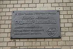 Георгий Петрович Судаков, имя при рождении Григорий Тарасович Белименко (1 марта 1900, с. Прохоры Приморской области — 15 декабря 1937, Коммунарка (расстрельный полигон) Московской области) — первый ректор Московского авиационного института, директор Высшего Аэромеханического училища (ВАМУ), начальник производства авиационного моторостроительного завода № 24 им. Фрунзе (сейчас Салют (предприятие), инженер.