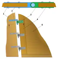 Цельносварное полое внутри перо руля состоит из двух выпуклых наружных оболочек, имеющих с внутренней стороны ребра и вертикальные диафрагмы для повышения жесткости. По принципу расположения руля на оси вращения различают обыкновенный руль, балансирный и полубалансирный. У обыкновенного руля плоскость пера руля расположена сзади оси вращения. У балансирного руля перо расположено с двух сторон оси вращения, при этом передняя балансирная часть (площадью в пределах 20-30 % от площади задней) служит для компенсации поворотного усилия и снижения нагрузки. Полубалансирный руль отличается от балансирного тем, что его балансирная часть имеет меньшую высоту, чем основная[8].