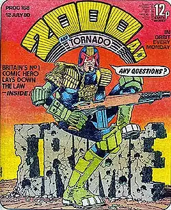 ![]() Судья Дредд на обложке 2000 AD #168 (июль 1980) (художник Майк МакМэхон) | |