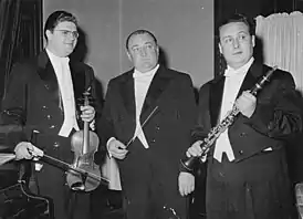 ![]() Йозеф Сук (слева) с дирижёром Францем Конвичным и кларнетистом Оскаром Михаликом, 1957 | |