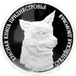 | Реверс | В центре — крупным планом стилизованное изображение собаки. Слева по кругу — надпись «КРАСНАЯ КНИГА ПРИДНЕСТРОВЬЯ», справа по кругу — «СУКЛЕЙСКАЯ ДВОРОВАЯ». | ||