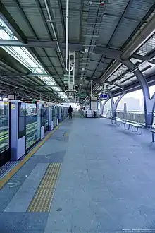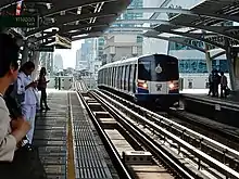 BTS Skytrain в Бангкоке, Таиланд. На март 2021 года состоит из 47 станций, длина маршрута 53,58 км. На части станций линии установлены автоматические платформенные ворота.