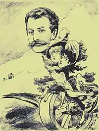 ![]() Князь Иосиф Мария Людвиг Сулковский бежит из психбольницы в Дёблинге. Сатирический рисунок в „Die Bombe” 1889 год | |