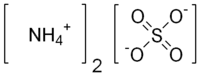 Сульфа́т аммо́ния (аммоний серноки́слый, лат. ammonium sulphate), (NH4)2SO4 — неорганическое бинарное соединение, аммонийная соль серной кислоты. Это бесцветные прозрачные кристаллы (или белый порошок) без запаха. Получают сульфат аммония действием серной кислоты на раствор аммиака и обменными реакциями с другими солями. Применяется в качестве удобрения, при производстве вискозы, в пищевой промышленности, при очистке белков в биохимии, в качестве добавки при хлорировании водопроводной воды. Токсичность сульфата аммония очень низкая.