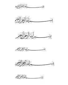 Шесть традиционных арабских почерков (сверху вниз): насх, сулюс, мухаккак, райхан, тауки и рика.