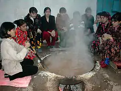 - Одни из первых людей, поселившиеся на территории Средней Азии, занимались земледелием. В одну из зим наступили чрезвычайно сильные холода, к которым люди не были готовы. Закончились запасы продовольствия, у людей не было тёплых вещей. Уже в самом конце зимы люди собрали проросшие пшеничные зёрна и без рецепта сварили всё, что у них осталось из запасов. Получившиеся блюдо помогло людям спастись от голода, прибавило сил.