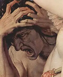 Безумие в живописи проявляется искаженной мимикой, противоречивыми или бессмысленными жестами, абсурдными действиями, а также неправильным, перекошенным положением тела. Не последнюю роль играет лицо с негармоничными, асимметричными или искаженными чертами лица, гримасы, непропорционально широко раскрытые, косящие глаза. Часто используется неподходящая ситуации мимика, как, например, смех в трагической или пугающей ситуации. Жесты сумасшедшего чаще всего противоречивы и непонятны, положение тела неправильно или искажено судорогой.