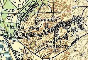 СУОРАНДА — починок, близ деревни Хирвосты, на земле Ильиных; 8 дворов, 16 м. п., 15 ж. п., всего 31 чел.; смежен с деревней. (1896 год)[4]