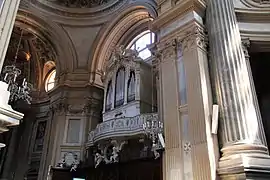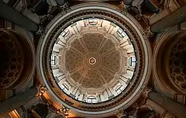 Интерьер храма обусловлен планом в виде греческого креста: шесть капелл и четыре алтаря, помимо главного, со статуями и памятниками из разноцветного каррарского мрамора, расходятся от подкупольного пространства. Особый интерес представляют рельефы, статуи, росписи алтаря и купола.
