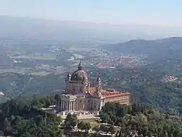 Церковь традиционно называют базиликой, несмотря на центрический план её основного объёма. Храм должен был служить мавзолеем герцогов савойских. Его расположение представляет собой своеобразную «вершину треугольника», зрительно соединяющего главные резиденции Савойского дома: замок Риволи, королевскую резиденцию Венария; позднее добавился дворец Ступиниджи (Palazzina di Caccia di Stupinigi). Возвышаясь среди зелёных холмов, церковь является центром впечатляющей панорамы Альп, она видна с большого расстояния, даже из Турина.