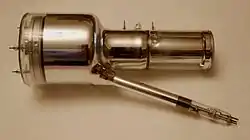 Супериконоско́п — телевизионная передающая трубка с накоплением заряда и переносом изображения с фотокатода на диэлектрическую мишень[1]. В отличие от иконоскопа, основу которого составляла светочувствительная мозаика, супериконоскоп содержит сплошной фотокатод и сплошную мишень, разделённые промежутком. Накопление заряда и образование «электронного рельефа» на мишени происходит за счёт эмиссии вторичных электронов с последней при переносе электронного изображения бомбардировкой фотоэлектронами.