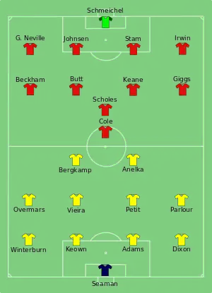 Матч начался с превосходства игроков «Манчестер Юнайтед», но за 11 минут до перерыва счёт открыл игрок «Арсенала» Марк Овермарс. Во втором тайме преимуществом полностью владел «Арсенал», что поспособствовало ещё 2 голам «канониров» в ворота противника. Их забили Кристофер Вре на 57-й минуте, и Николя Анелька на 72-й.