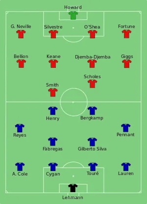 «Канониры» в этом матче одержали победу 3:1: сначала Жилберту Силва на 50-й минуте встрече вывел «Арсенал» вперёд, спустя пять минут нападающий манкунианцев Алан Смит уравнял счёт на табло, но буквально сразу же лондонцы вновь повели благодаря точному удару испанца Рейеса, а за 10 минут до окончания встречи защитник «красных дьяволов» Сильвестр, срезав мяч в собственные ворота, установил окончательный итог поединка.