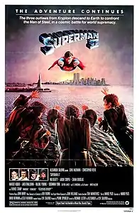 «Супермен 2» (англ. Superman II) — супергеройский фильм 1980 года[5][6][7] режиссера Ричарда Лестера по сценарию Марио Пьюзо, Дэвида и Лесли Ньюманов, на основе персонажа DC Comics - Супермен. Сиквел фильма «Супермен» 1978 года. В главных ролях Джин Хэкман, Кристофер Рив, Теренс Стэмп, Нед Битти, Сара Дуглас, Марго Киддер и Джек О'Халлоран. Фильм был выпущен в Австралии и континентальной Европе 4 декабря 1980 года,[3] и в других странах в течение 1981 года. Отдельные премьеры Супермена 2 были представлены в Megasound, высокоэффективной системе объемного звучания, похожей на Sensurround.