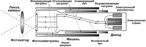 Самая совершенная из передающих вакуумных телевизионных трубок, основанных на внешнем фотоэффекте и вытеснившая иконоскоп из передающих ТВ-камер. Является развитием конструкции ортикона.