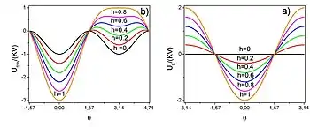 ( — угол между направлением магнитного момента частицы и направлением магнитного поля, h — нормированное на ms/(2K) магнитное поле, V — объем частицы, ms — её намагниченность насыщения, K — константа одноосной анизотропии СВ-частицы.