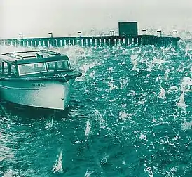 Фотография Сиднейского урагана с градом в 1947 году, на которой виден град, обрушившийся на воду в заливе Роуз.