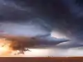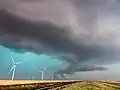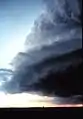 Шельфовое облако суперъячейки с низким уровнем осадков. Грозовой воротник образуется, когда более холодная воздушная масса проходит через более теплый влажный воздух.