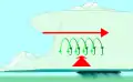 Сдвиг ветра (красный) заставляет воздух вращаться (зелёный)