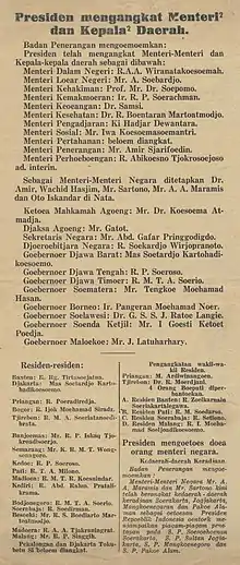 - Kabinet Menteri (индон.) (недоступная ссылка). Perpustakaan Nasional Republik Indonesia. — Официальный сайт Национальной библиотеки Индонезии. Дата обращения: 18 октября 2018. Архивировано 23 марта 2018 года.