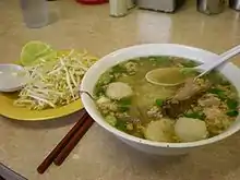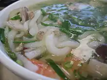 - Хутьеу (вьетн. Hủ tiếu) — суп с бань ху тьеу (вьетн. bánh hủ tiếu) и яичной лапшой. Это блюдо было интродуцировано жителями Чаочжоу (народ хоа).