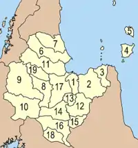 Провинция делится на 19 районов (ампхе), которые в свою очередь, состоят из 131 подрайона (тамбон) и 1028 поселений (мубан):