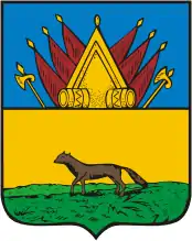 Неутверждённый проект герба 1867 года: в золотом щите чёрная бегущая лисица с червлёными глазами и языком. В вольной части герб Тобольской губернии. Щит увенчан серебряной башенной короной о трёх зубцах и окружён золотыми колосьями, соединёнными Александровской лентой.