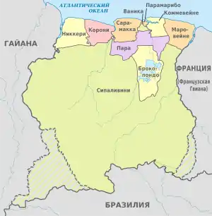 Суринам делится на 10 округов.