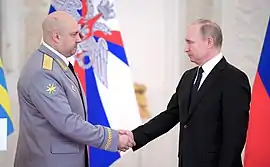 Сергей Владимирович Суровикин (род. 11 октября 1966, Новосибирск, РСФСР, СССР) — российский военачальник, Главнокомандующий Воздушно-космическими силами Российской Федерации с 31 октября 2017 года. Герой Российской Федерации (2017), генерал армии (2021)[1].