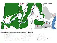 Севернее Сутормино, у излучены реки Тарусы, находится Попов луг (в настоящий момент частично застроенный дачами). Название, употребляемое вплоть до 1960-х годов, отсылает к пустоши Мальгино, владению священнослужителей Николаевской церкви города Тарусы.