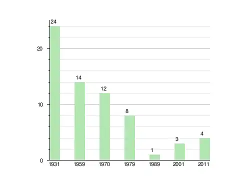 | 1931[2] | 1959пер.[3] | 1970пер.[3] | 1979пер.[4] | 1989пер.[5] | 2001пер.[6] | 2011пер.[7] |