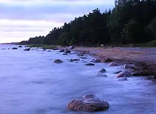 Залив Хара в Суурпеа. На заднем плане — остатки военных сооружения