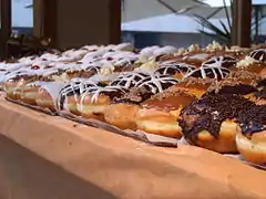 Суфгания обжаривается в масле, после чего внутрь теста вводится желе или повидло, и готовое блюдо покрывается сахарной или шоколадной глазурью.