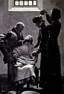 ![]() Насильственное кормление суфражистки объявившей голодовку | |