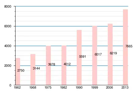 Население коммуны в 2011 году составляло 7548 человек[6], в 2012 году — 7549 человек[7], а в 2013-м — 7665 человек[5].