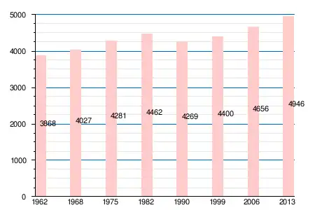 | 3868 | 4027 | 4281 | 4462 | 4269 | 4400 | 4656 | 4804 | 4966 | 4950 | 4946 |