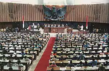 | Вице-президент | пост вакантен (1967—72) Хаменгкубувоно IX (1972—77) Адам Малик (1978—83) Умар Вирахадикусума (1983—88) Судармоно (1988—93) Три Сутрисно (1993—98) Бухаруддин Юсуф Хабиби (1998) |