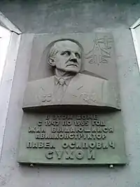 - В Москве установлена мемориальная доска по адресу: Ленинский проспект, дом 7, где П. О. Сухой жил с 1947 по 1965 годы.