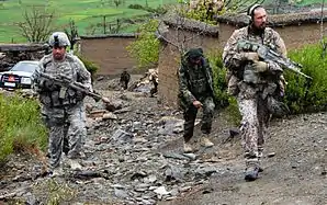 Солдаты США, Афганистана и Латвии во время патруля в Афганистане.