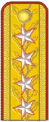 | Российское соответствие | Генерал армии | Генерал-полковник | Генерал-лейтенант | Генерал-майор | Полковник | Подполковник | Майор | Капитан | Лейтенант | Младший лейтенант |