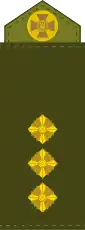 | Украинское звание | Генерал | Генерал-лейтенант | Генерал-майор | Бригадный генерал | Полковник | Подполковник | Майор | Капитан | Старший лейтенант | Лейтенант | Младший лейтенант |