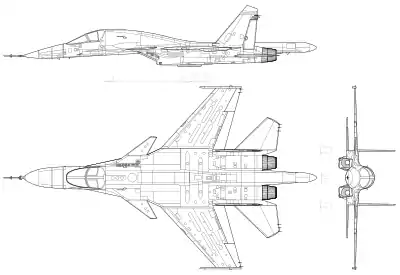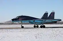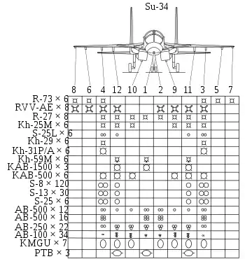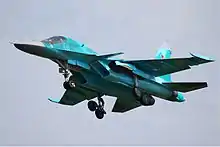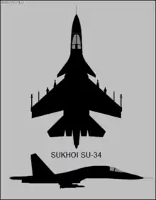 Су-34 (изделие «Т-10В», по кодификации НАТО: Fullback — «Защитник») — советский/российский многофункциональный фронтовой сверхзвуковой истребитель-бомбардировщик, предназначенный для нанесения ударов авиационными средствами поражения по целям противника в оперативной и тактической глубине с сосредоточением основных усилий на удалении 150—600 км от линии боевого соприкосновения. в условиях сильного противодействия средствами противовоздушной обороны противника и применения современных средств радиоэлектронной борьбы[5], поражения воздушных целей противника днём и ночью в простых и сложных метеорологических условиях[1].