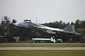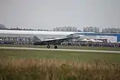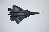 ![]() Су-57 во время демонстрационного полёта на авиасалоне МАКС-2011. | |
