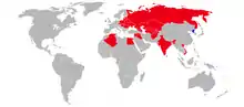 Чехословакия — чехословацкие ВВС стали первым зарубежным эксплуатантом Су-7. В 1963 году ЧССР оплатила заказ первой дюжины Су-7 для своих ВВС, это стало началом для амбициозных планов по оснащению двух истребительно-бомбардировочных полков новыми самолётами. Первой частью, получившей Су-7БМ, стал 28-й авиаполк, входящий в состав 34-й авиадивизии, размещённой на аэродроме Часлав. Всего, начиная с середины 1964 года, полк получил 41 Су-7БМ. В июле следующего года первые машины получил 20-й истребительно-бомбардировочный авиаполк в Намеште-над-Ославой. В 1966 году начали в чехословацкие ВВС поступать Су-7БКЛ, в конце этого же года прибыли первые двухместные Су-7У, а в следующем году поставки были завершены. Всего было поставлено 64 Су-7БМ, 31 Су-7БКЛ и 7 Су-7У. Ещё один Су-7БКЛ чехи получили из Польши, взамен сбитого на учениях польским МиГ-21ПФМ, чехословацкого Су-7БКЛ. Другой Су-7БКЛ был передан в качестве компенсации Советским Союзом. В 1990 году 20-й ибап сдал свои последние Су-7БКЛ. За время эксплуатации Су-7 в ВВС Чехословакии было потеряно 30 истребителей.[16][17]