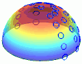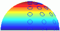 Склеивание точек, соответствующих одинаковой поляризации. Показана только верхняя полусфера, соответствующая левым поляризациям. Азимутальный угол увеличивается вдвое. Тангенс угла восхождения также удваивается. [4]