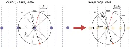 где - базисный вектор прямой решетки, - волновой вектор падающей волны, - волновой вектор дифрагированной волны, m - целое число.