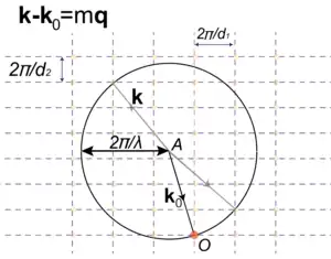 где -- вектор обратной решетки. Эти формулы можно проиллюстрировать простым графическим построением, аналогичным иллюстрации направлению на порядки для дифракционной решетки.