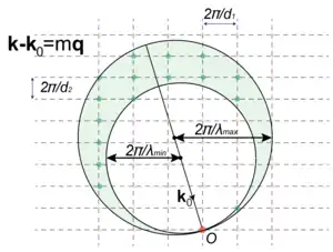 В случае диапазона длин волн, возбуждаются все порядки, которые попадают между сферами, соответствующими минимальной и максимальной длине волны.
