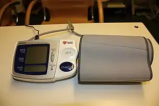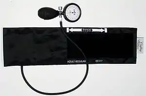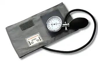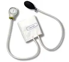 Сфигмомано́метр (греч. σφυγμός, пульс + μανός, неплотный + μετρέω, измеряю[1]) — тонометр для неинвазивного измерения артериального давления. Сфигмоманометр состоит из манометра, измеряющего давление воздуха; манжеты, надеваемой на руку пациента; и нагнетателя воздуха с регулируемым клапаном спуска.