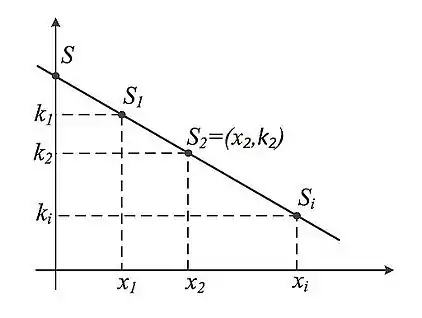 Если мы хотим разделить секрет между людьми таким образом, чтобы восстановить его могли только человек ( ≤ ), мы «прячем» его в формулу многочлена степени . Восстановить этот многочлен и исходный секрет можно только по точкам. Количество же различных точек многочлена не ограничено (на практике оно ограничивается размером числового поля, в котором ведутся расчёты)[2].
